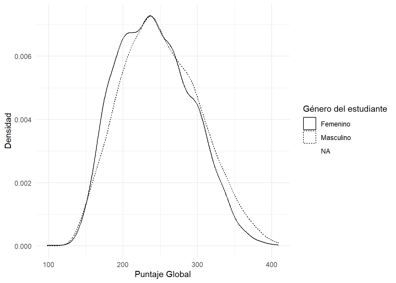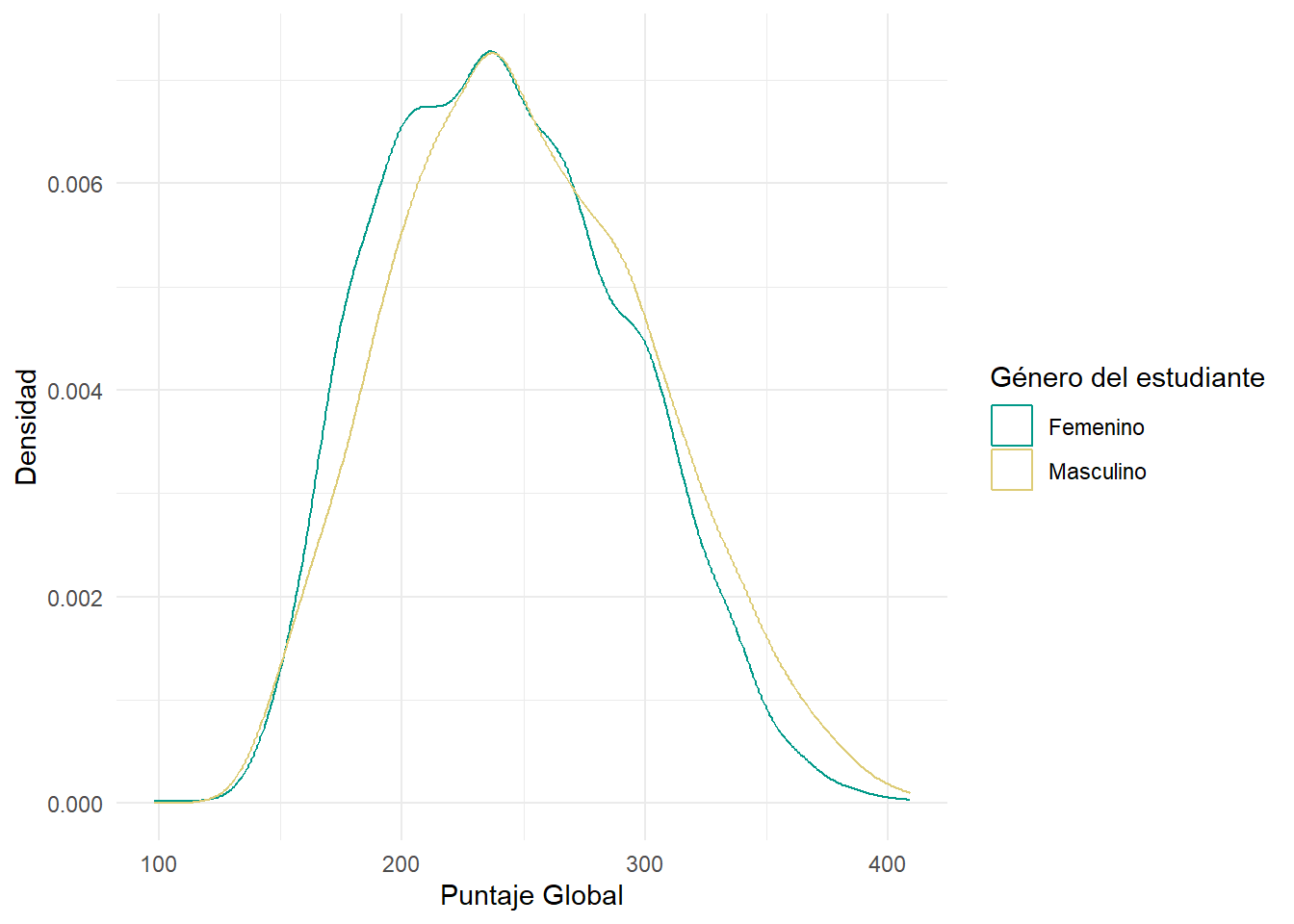 labs(x = "Puntaje Global", y = "Densidad",