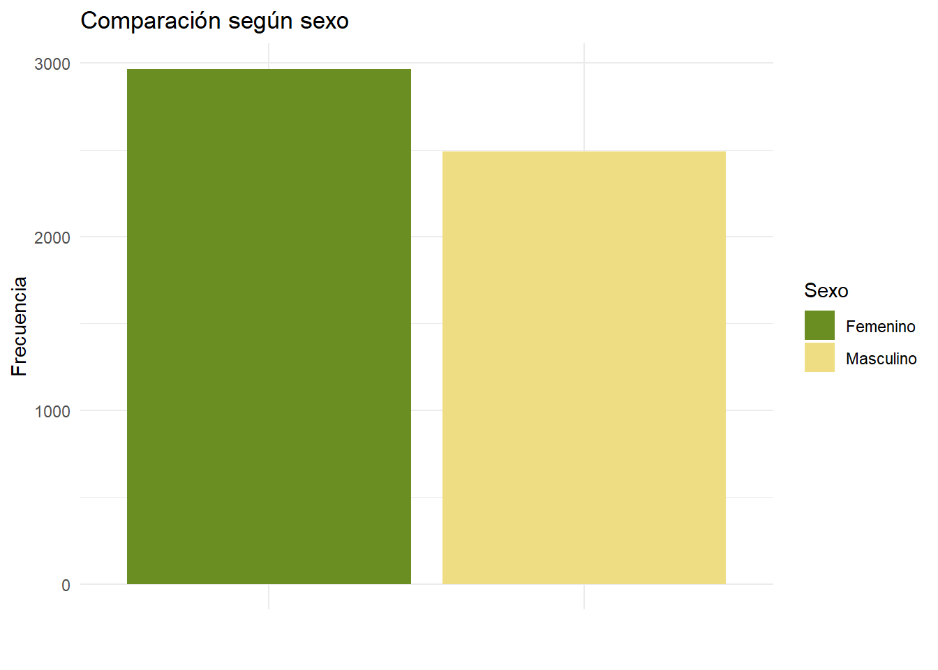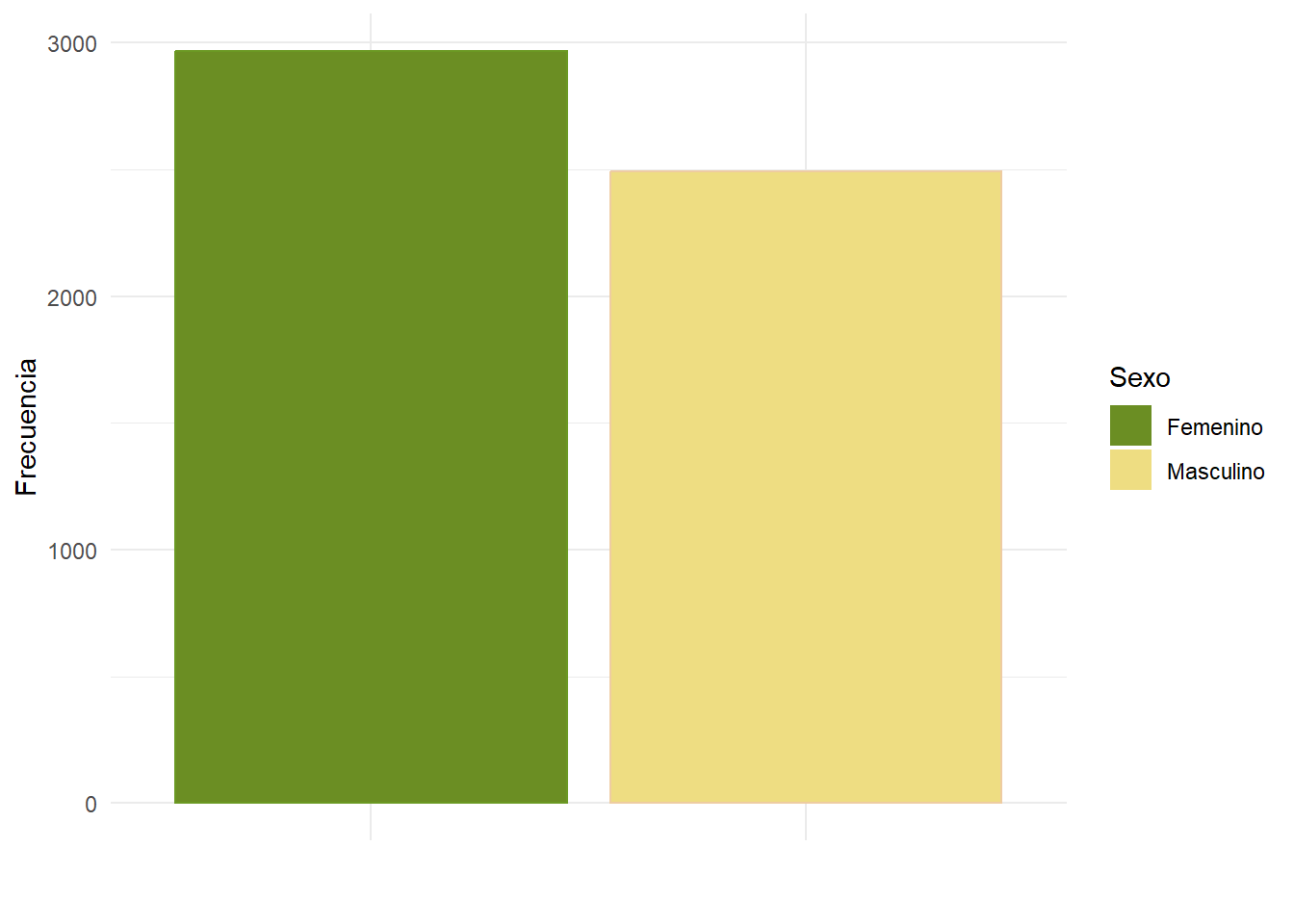 labs(x = "", y = "Frecuencia", fill = "Sexo",