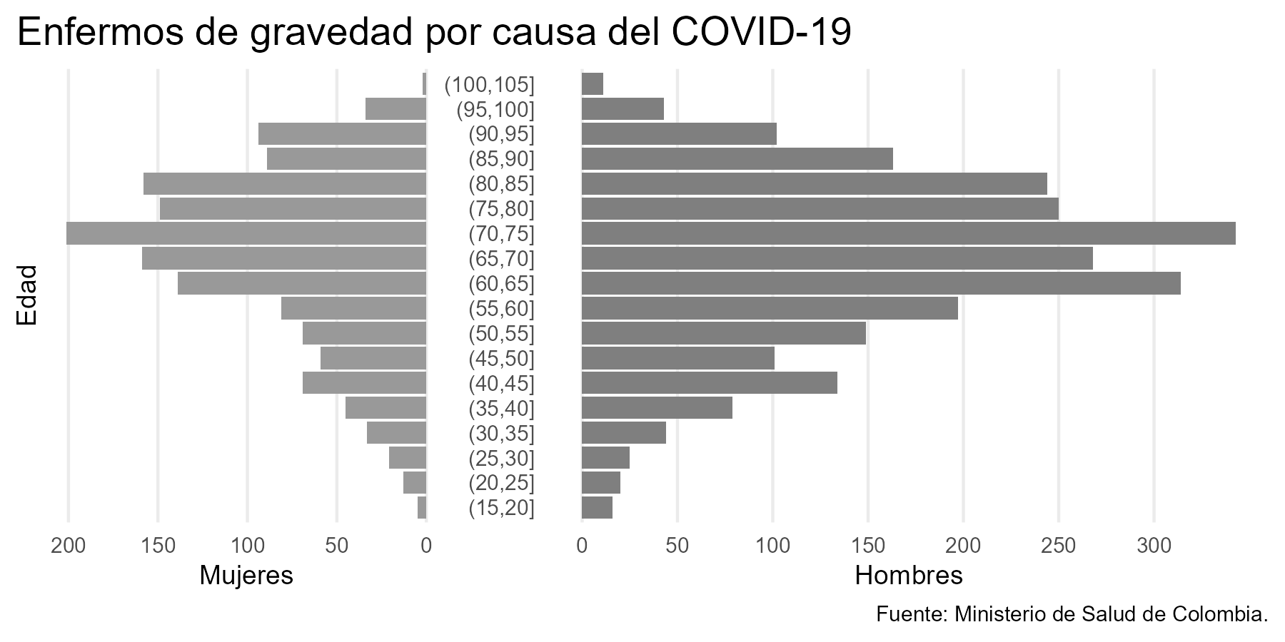 Pirámide poblacional de la población afectada por la pandemia. Elaboración propia.